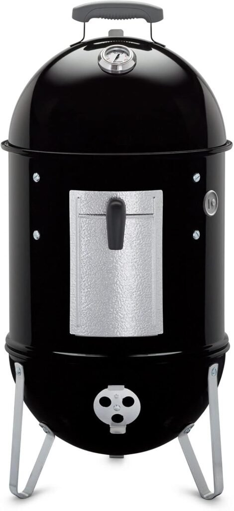 Weber’s Smokey Mountain series has a loyal following and for good reason. The 14-inch model is compact but extremely efficient, ideal for small families or portable smoking sessions. It holds temperature remarkably well, even during long cooks, thanks to Weber’s iconic airtight design. The smoke flavor output is excellent, and the build quality is exceptional for its size. It’s one of the most trusted smokers for beginners learning how to manage charcoal without complexity. Although the cooking area is smaller than others on this list, the performance, reliability and flavor make it one of the best charcoal smokers in the market.